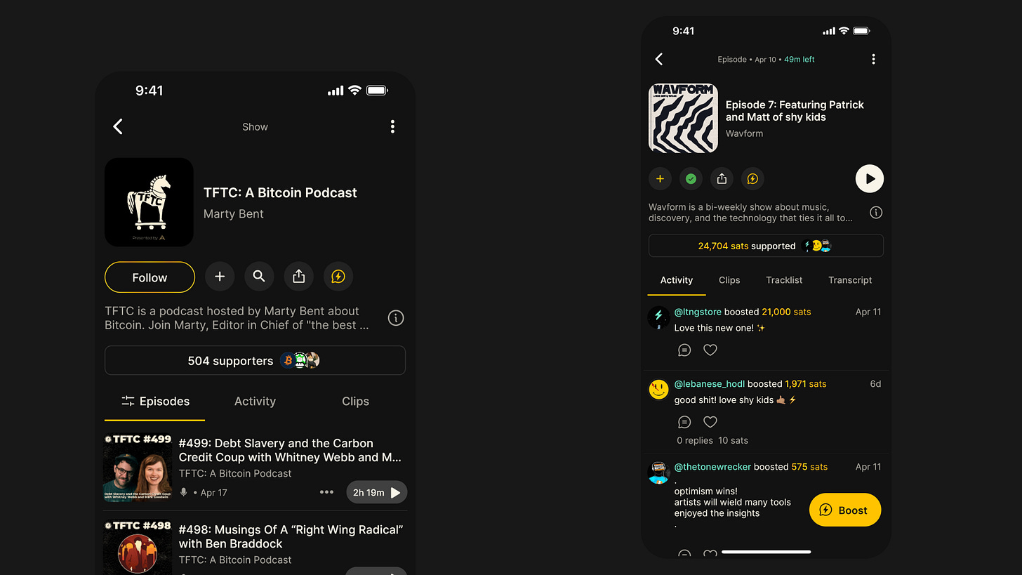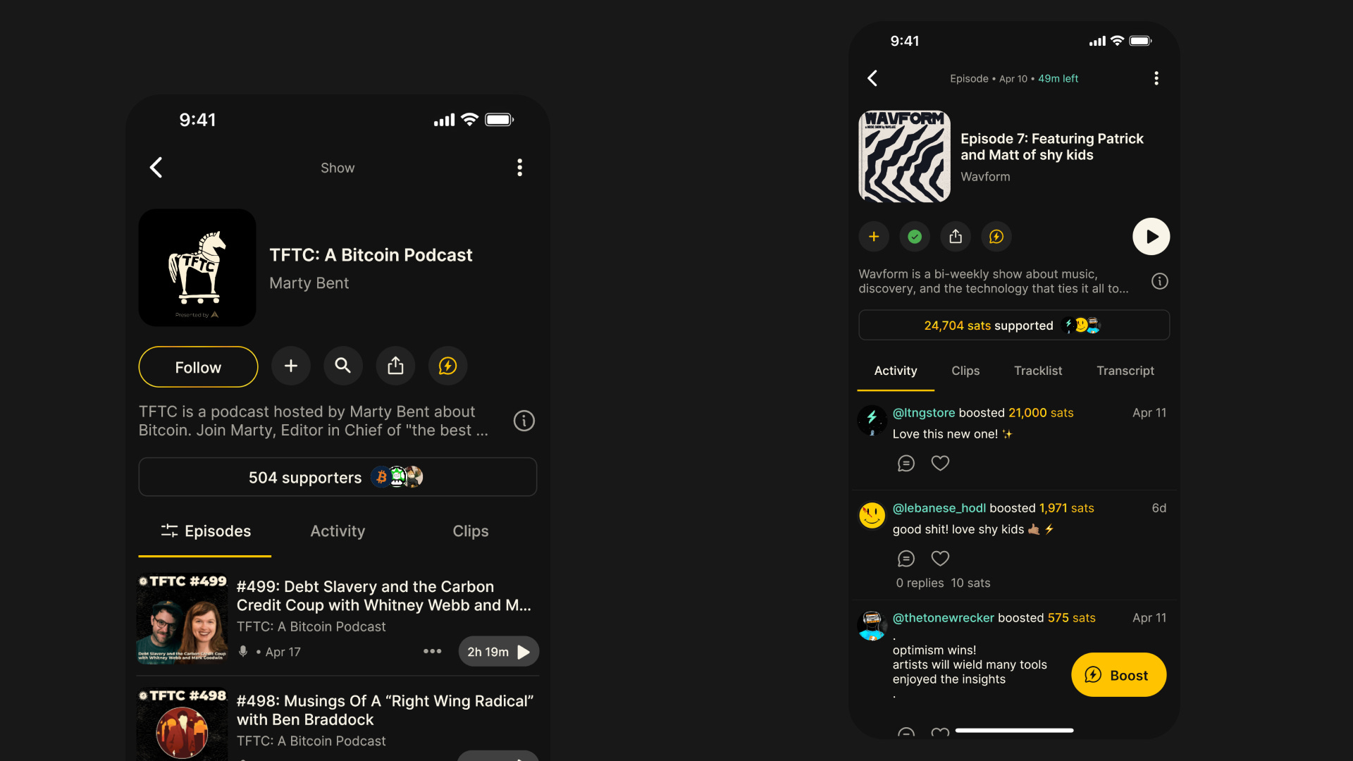 One of those new features is the support stats, which give you a better sense of how valuable listeners found each piece of content. On the show pages, we display the total number of unique supporters. On the episode, track and album pages we display the total support value. Tap the button to see all supporters and filter by time range.