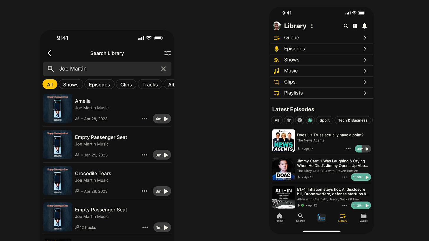 Previously you were able to search your library from each specific library tab, but this required several taps. Now you can just hit the search icon on the main library tab and search across your entire library or filter by content type.