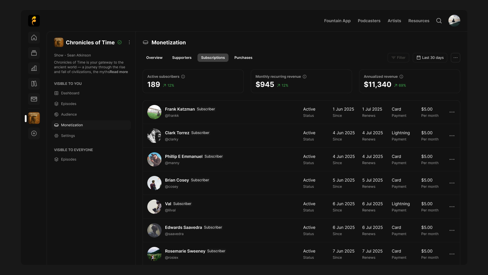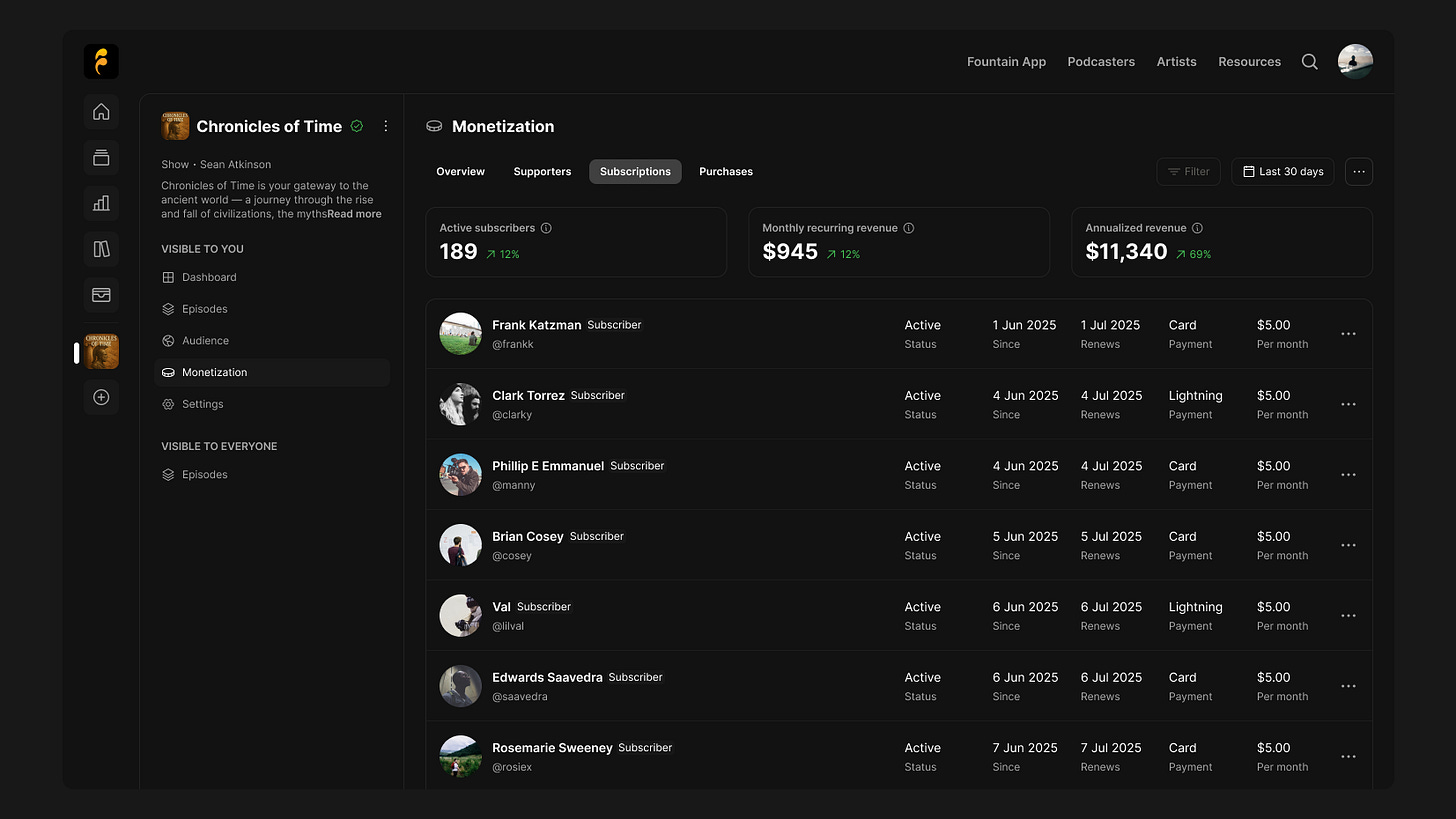 We launched Fountain for Podcasters to help you generate a reliable income stream and build a thriving community - regardless of your monthly downloads.