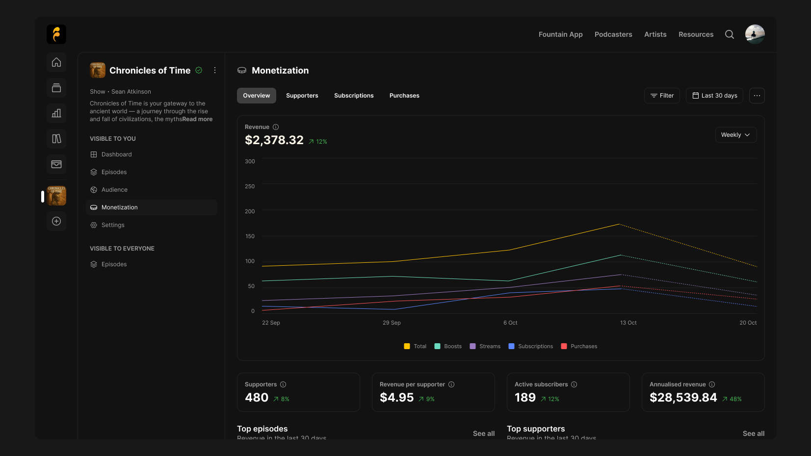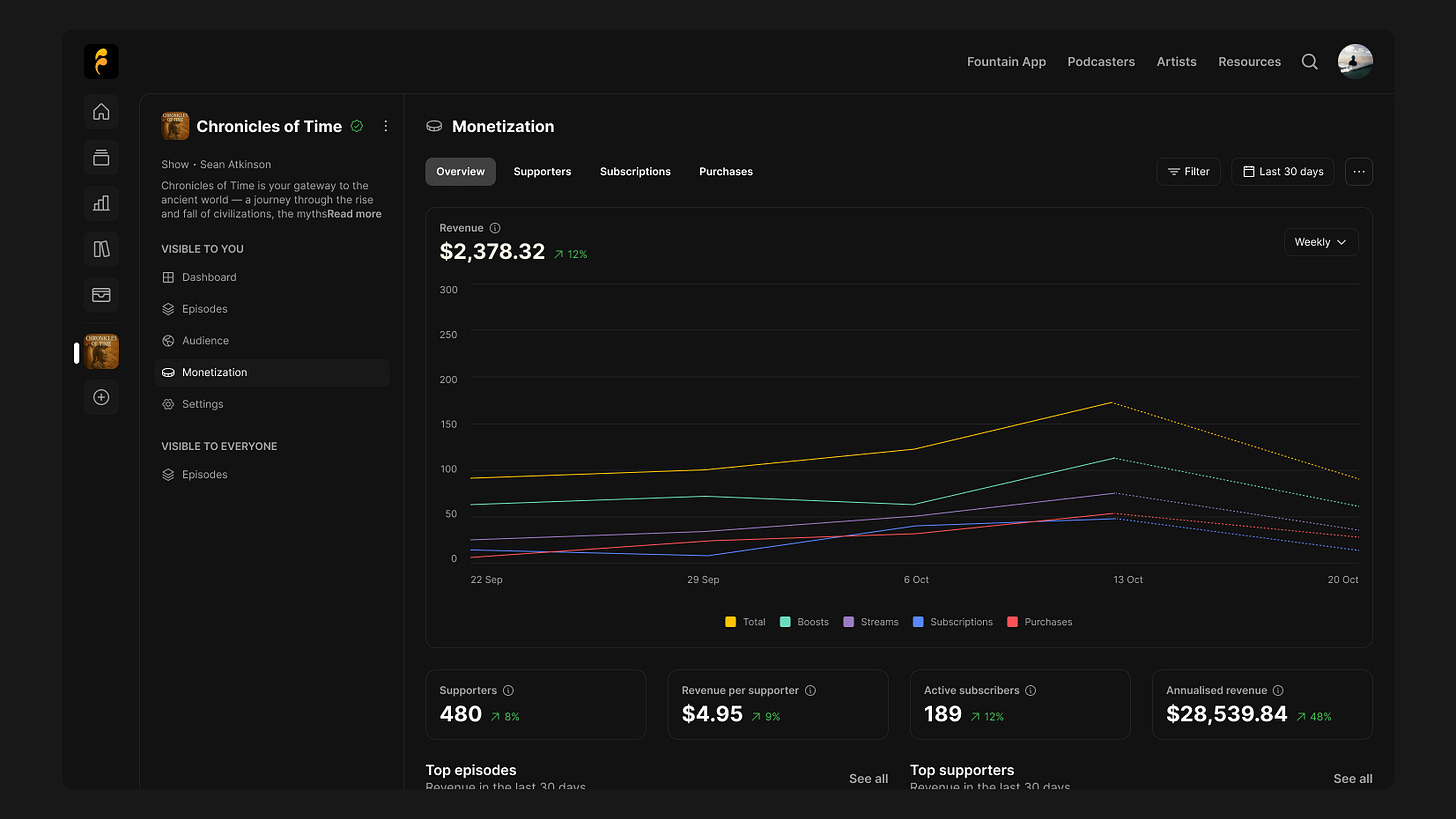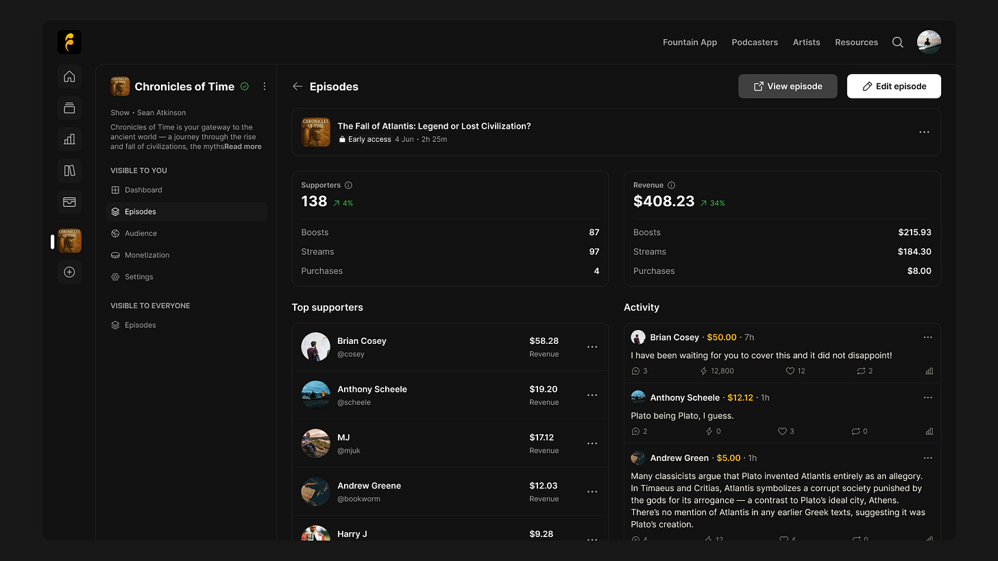 Get a full walkthrough of the platform and find out how podcasters hosting on Fountain are already earning from direct listener support.