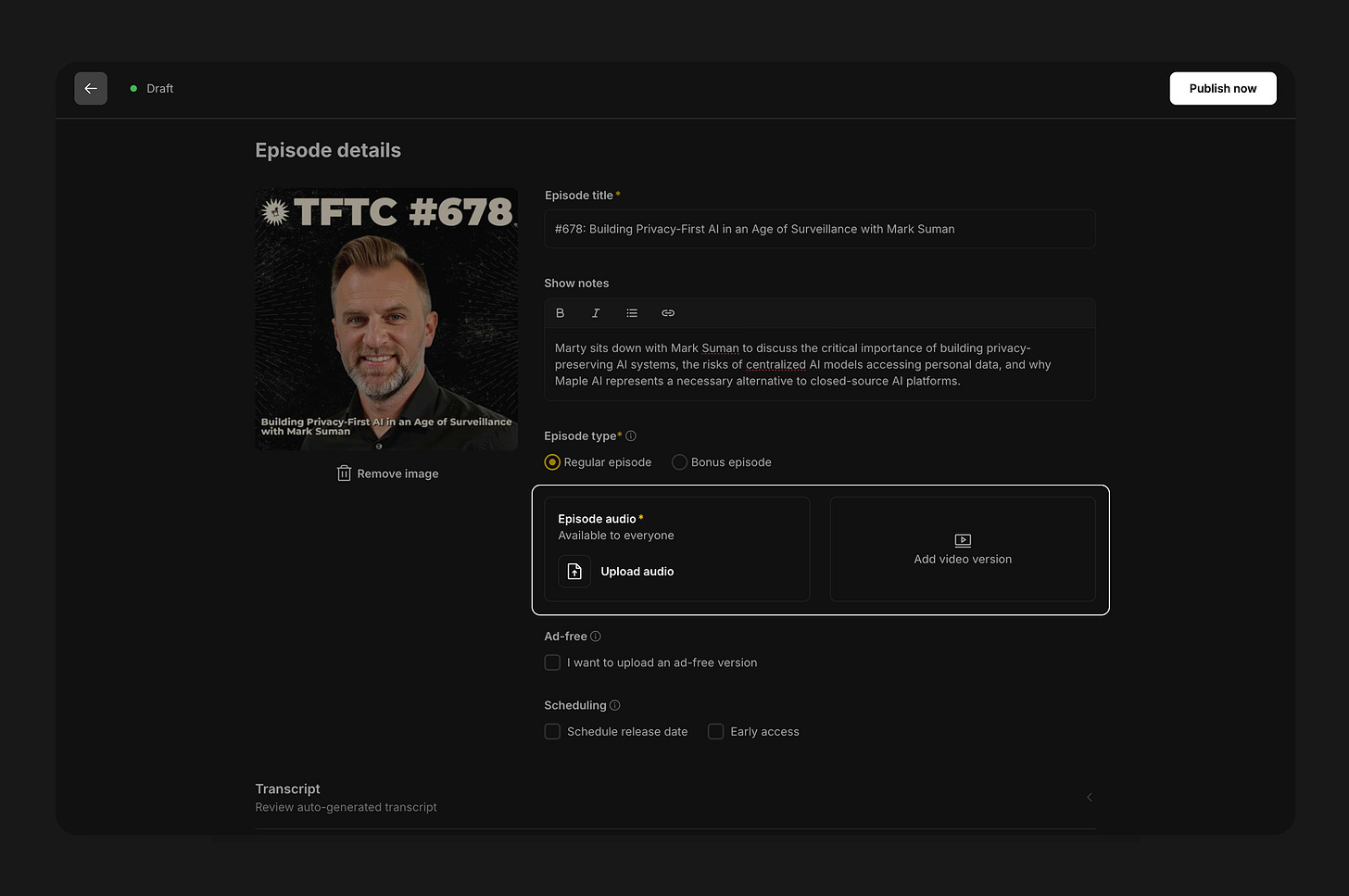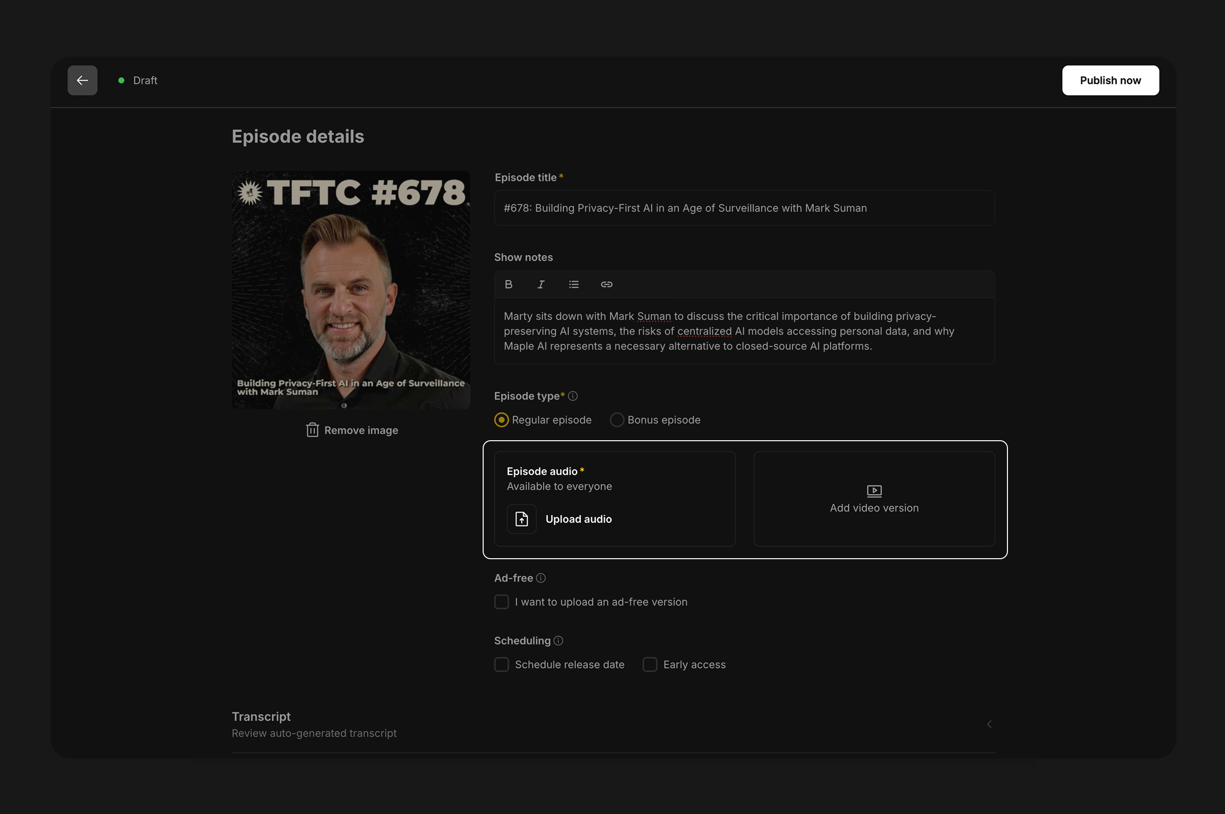 Video has become one of the most reliable ways to stand out. Although audio listeners tend to be more loyal, audio content is harder to discover. Short video clips can break through on social platforms and reach people who may never find the podcast otherwise. And when that video isn’t locked to a single platform like YouTube, the whole podcasting experience becomes better for both creators and listeners.